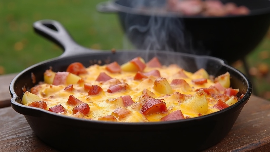 - Layer It Up: In a greased cast iron skillet or metal pan, place half the potatoes on the bottom, scatter half the ham, drizzle on some sauce, and repeat with the rest. Sprinkle more cheese and smoked paprika on top for good measure.